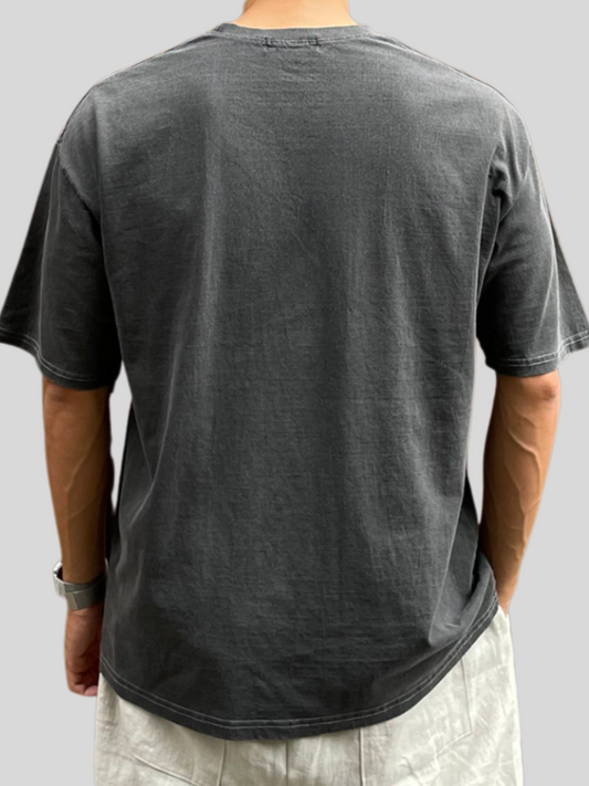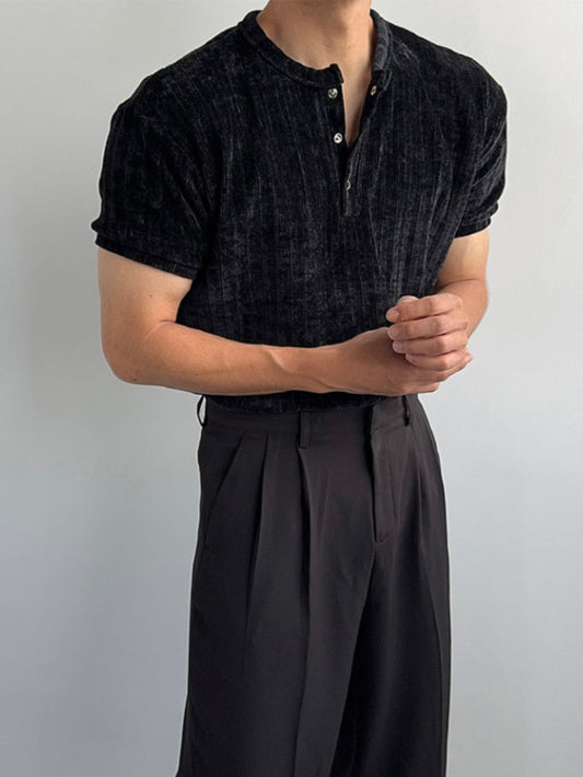 Velour Henley Neck Short-Sleeve T-Shirt