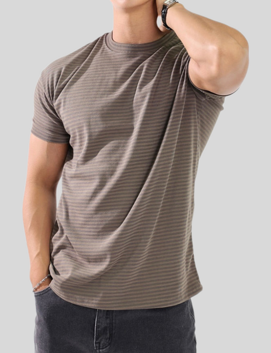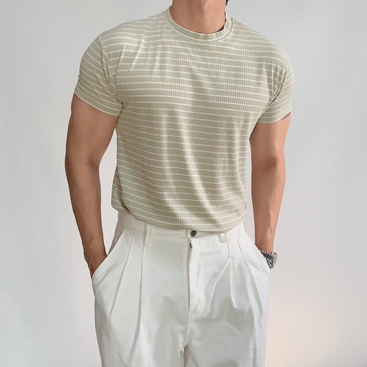 Spandex Striped Seersucker Short-Sleeve T-Shirt