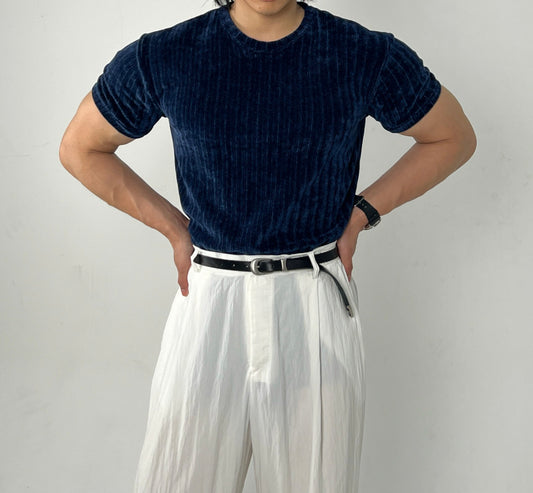 Velour Round Neck Short-Sleeve T-Shirt