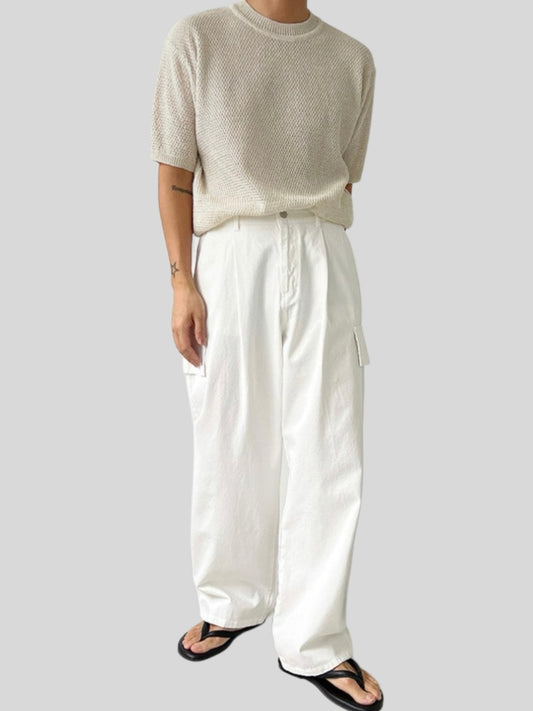 Coarse Linen Short-Sleeve Cardigan