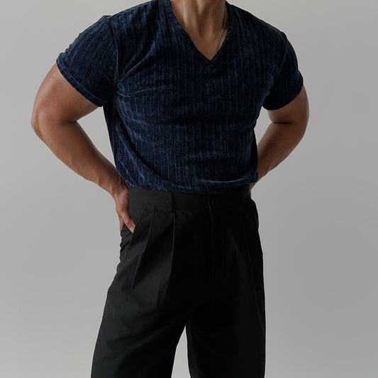 Velour V-Neck Short-Sleeve T-Shirt