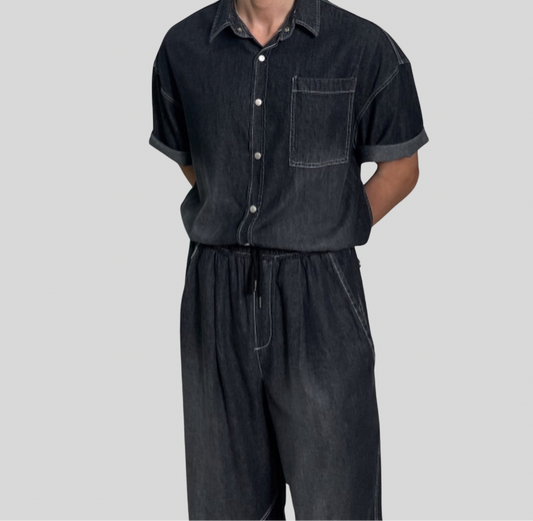 Pocket Denim Shirt & Pants Set
